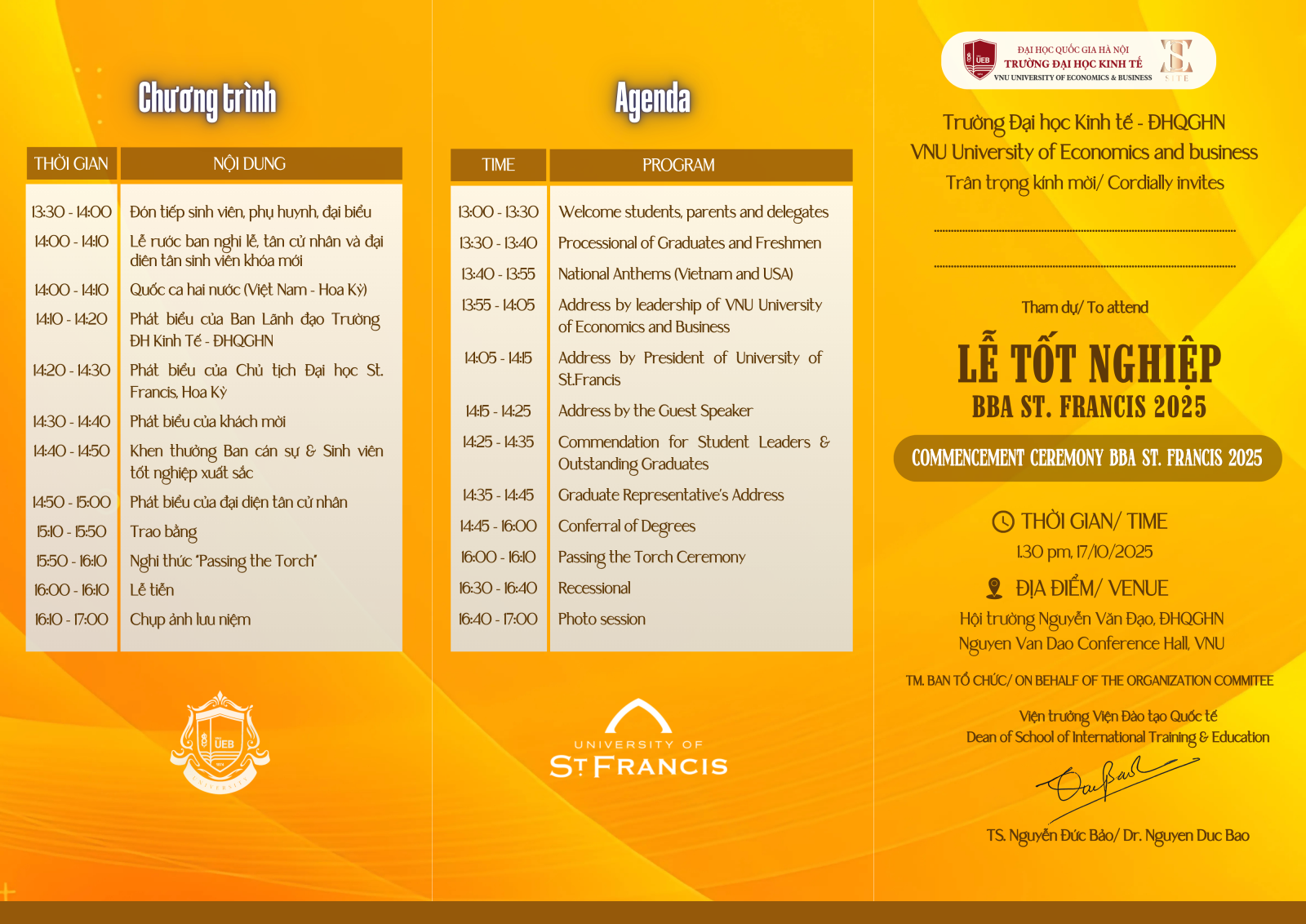Viện Đào tạo Quốc tế, Trường Đại học Kinh tế - ĐHQGHN tổ chức Lễ Tốt Nghiệp BBA USF (Chương trình Cử nhân Quản trị kinh doanh chính quy quốc tế do Đại học St.Francis cấp bằng) khóa 1.