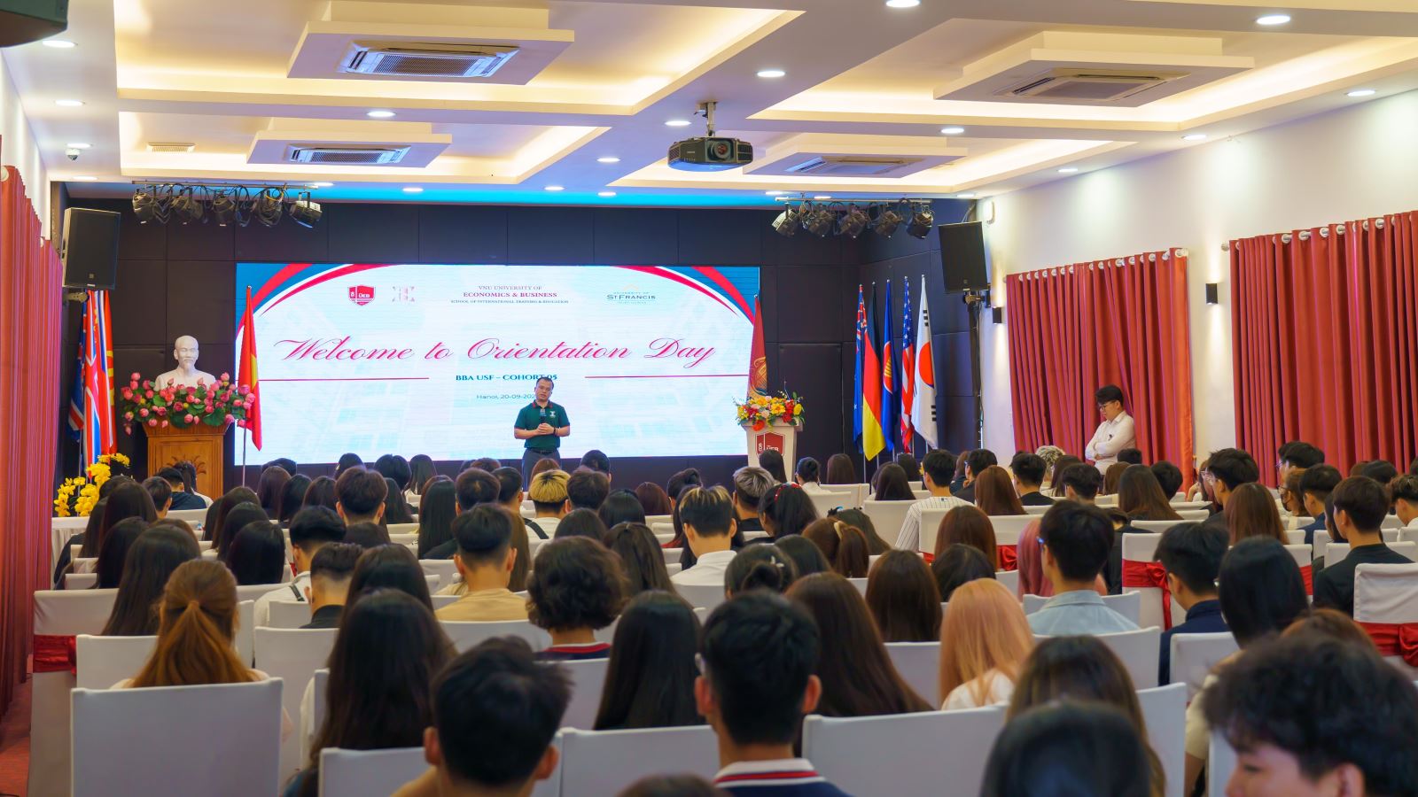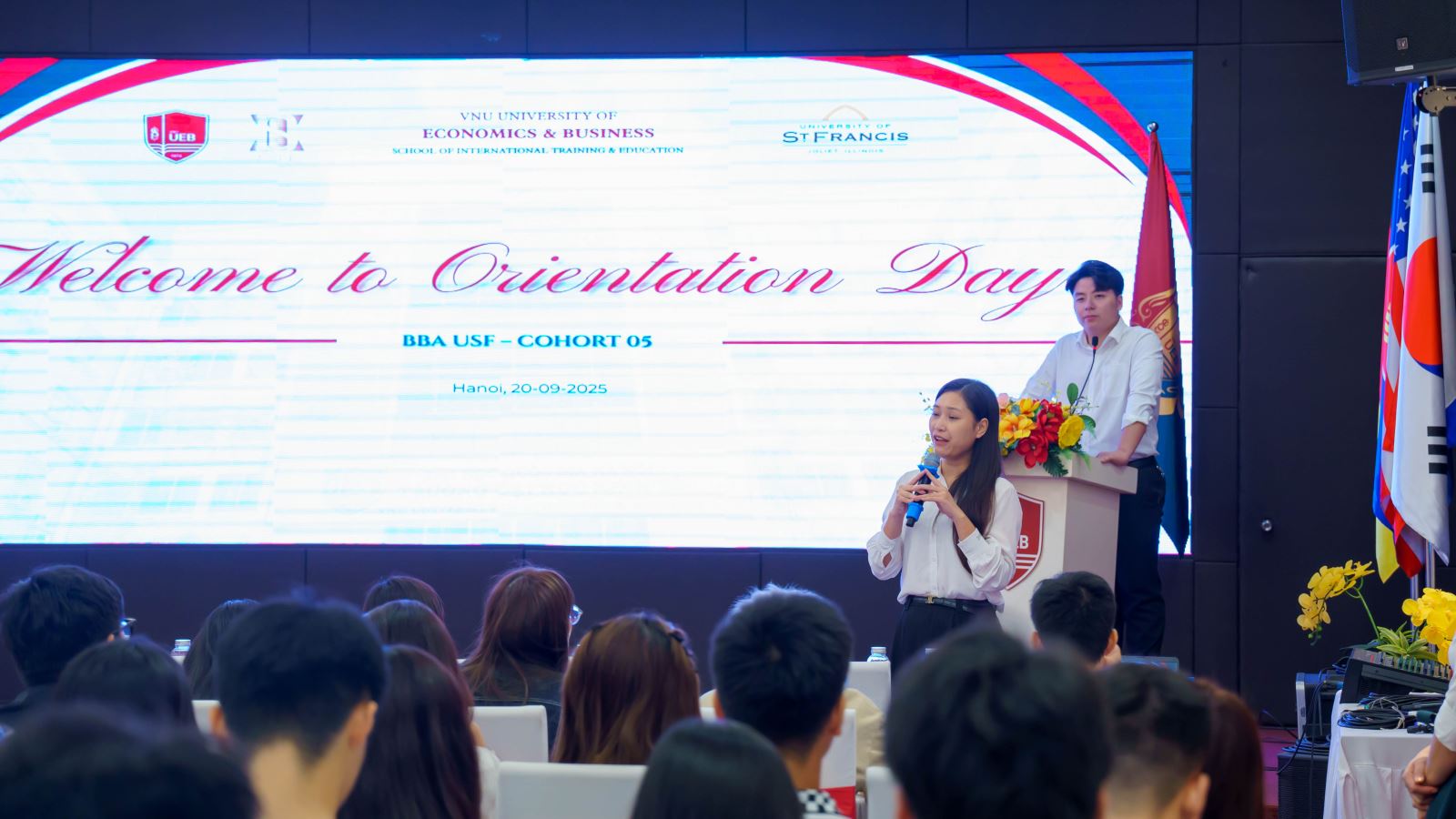 Ngày 20/9/2025 vừa qua, tại Trường Đại học Kinh tế - ĐHQGHN (VNU-UEB), Viện Đào tạo Quốc tế (UEB-SITE) đã tổ chức Hội thảo Định hướng học tập (Orientation Day) thường niên dành cho tân sinh viên Chương trình Cử nhân chính quy quốc tế ngành Quản trị kinh doanh, liên kết giữa Trường Đại học Kinh tế - ĐHQGHN với Đại học Troy (Hoa Kỳ) – Khóa 24 và Đại học St.Francis (Hoa Kỳ) – Khóa 5. Đây là một hoạt động thường niên có ý nghĩa đặc biệt, không chỉ cung cấp những thông tin thiết yếu về chương trình đào tạo mà còn là dấu mốc khởi đầu cho hành trình học tập và trưởng thành của thế hệ sinh viên mới.