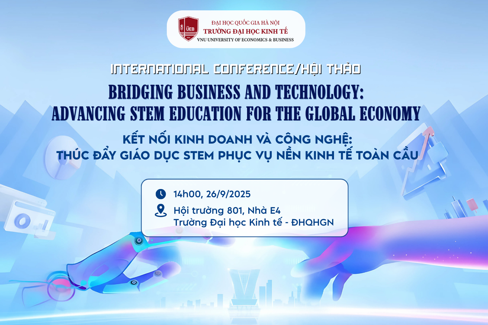 Trong bối cảnh nền kinh tế toàn cầu bước vào kỷ nguyên số với những thay đổi sâu rộng từ công nghệ và trí tuệ nhân tạo, giáo dục STEM ngày càng khẳng định vai trò trung tâm trong việc đào tạo nguồn nhân lực chất lượng cao, đáp ứng nhu cầu phát triển bền vững. Nhằm tạo diễn đàn trao đổi học thuật, kết nối tri thức và chia sẻ kinh nghiệm quốc tế, Viện Đào tạo Quốc tế, Trường Đại học Kinh tế – ĐHQGHN tổ chức hội thảo quốc tế với chủ đề “Bridging Business and Technology: Advancing STEM Education for the Global Economy (Kết nối Kinh doanh và Công nghệ: Thúc đẩy giáo dục STEM phục vụ nền kinh tế toàn cầu)”.