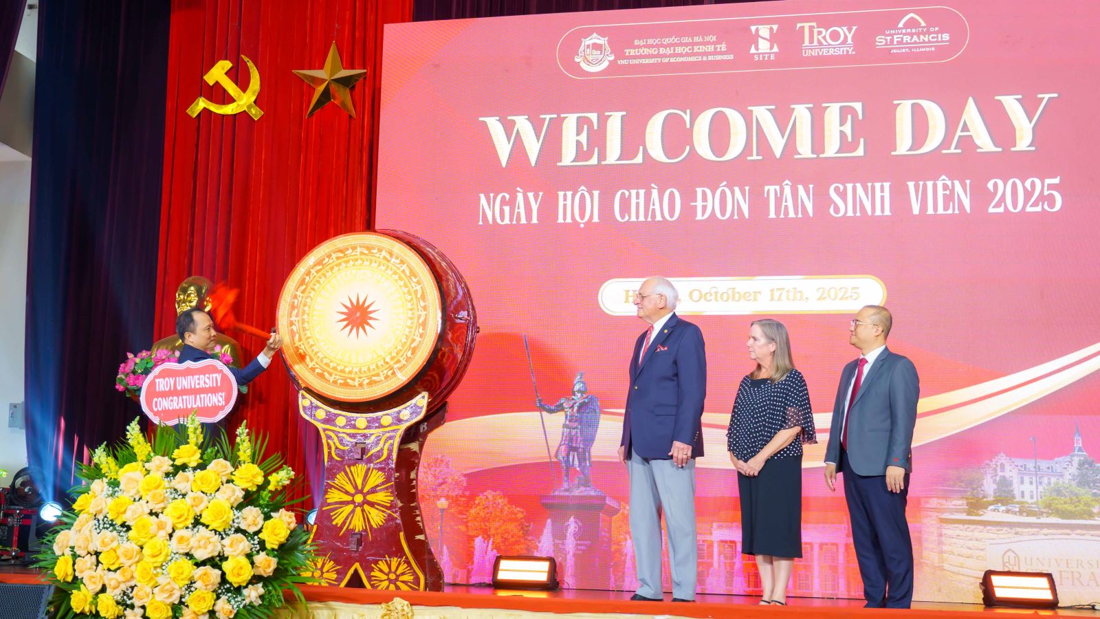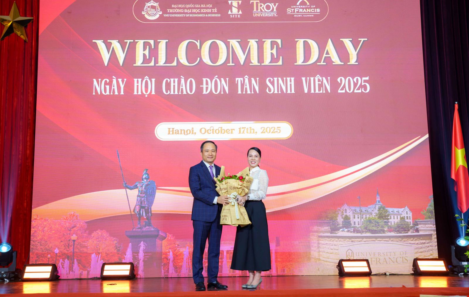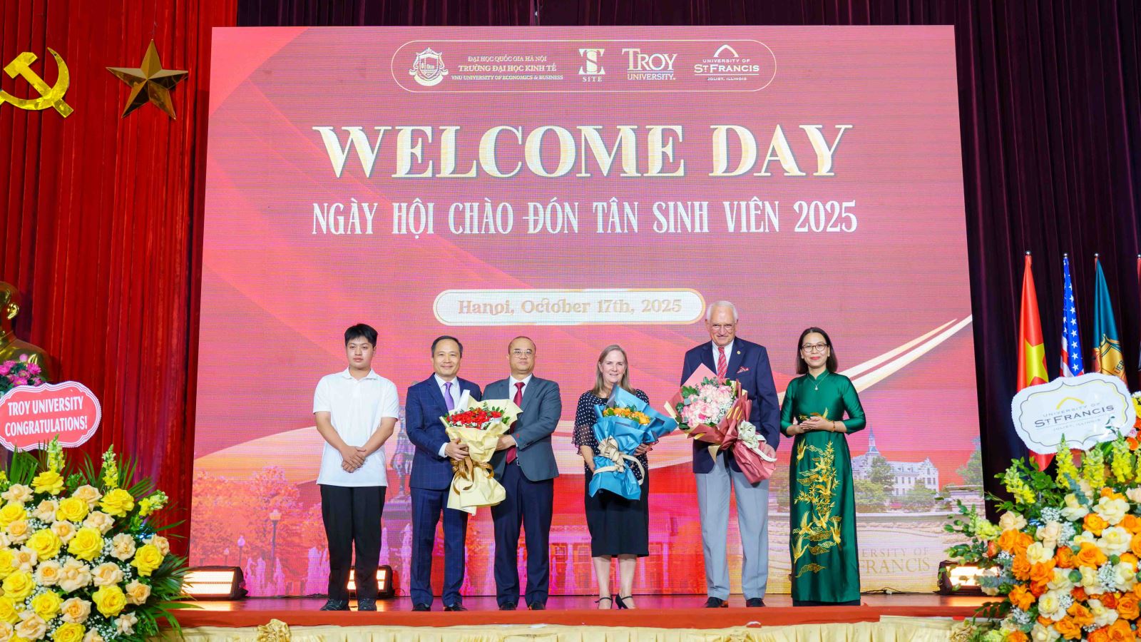 Sáng ngày 17/10/2025, tại Hội trường Nguyễn Văn Đạo, Đại học Quốc gia Hà Nội, không khí trở nên sôi động và đầy cảm xúc khi Viện Đào tạo Quốc tế (UEB-SITE), Trường Đại học Kinh tế, ĐHQGHN long trọng tổ chức “Welcome Day 2025: Ngày hội Chào đón Tân sinh viên”. Đây là sự kiện thường niên có ý nghĩa đặc biệt, đánh dấu khởi đầu hành trình đại học của gần 600 tân sinh viên hai Chương trình BBA USF và BSBA Troy - UEB.