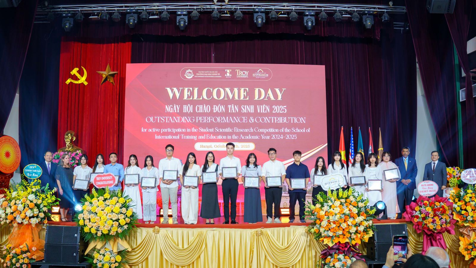 Ngay sau lễ khai giảng là phần vinh danh sinh viên có thành tích xuất sắc trong năm học 2024–2025. Những tấm bằng khen, phần quà và tràng pháo tay vang lên không chỉ dành cho các cá nhân tiêu biểu, mà còn là niềm tự hào chung của toàn thể sinh viên SITE – những người trẻ không ngừng khẳng định bản thân trong môi trường học tập quốc tế.